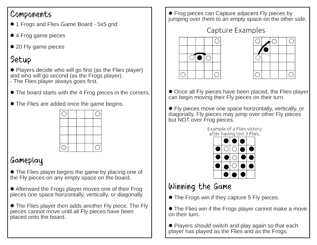 Here is how to play Frogs and Flies on a 5x5 grid.
